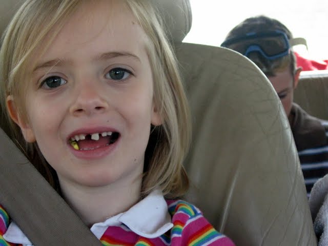 For days, she ran around with this tooth hanging out of her mouth. She wouldn't leave it alone, but she wouldn't just PULL IT ALREADY either.